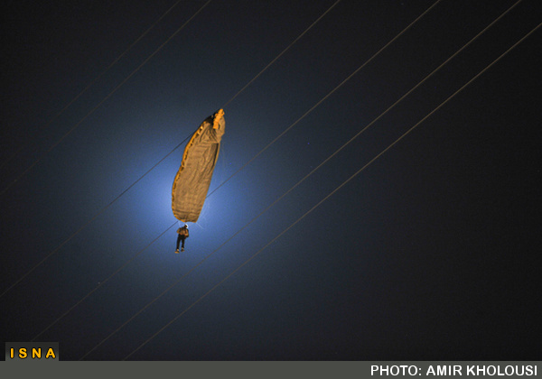 پس از رسیدن امدادگران به محل، مشخص شد این جوان كه نخستین پرواز خود را تجربه میكرد در ارتفاع بیش از 80 متری؛ در میان كابلهای برق فشار قوی، معلق مانده است.